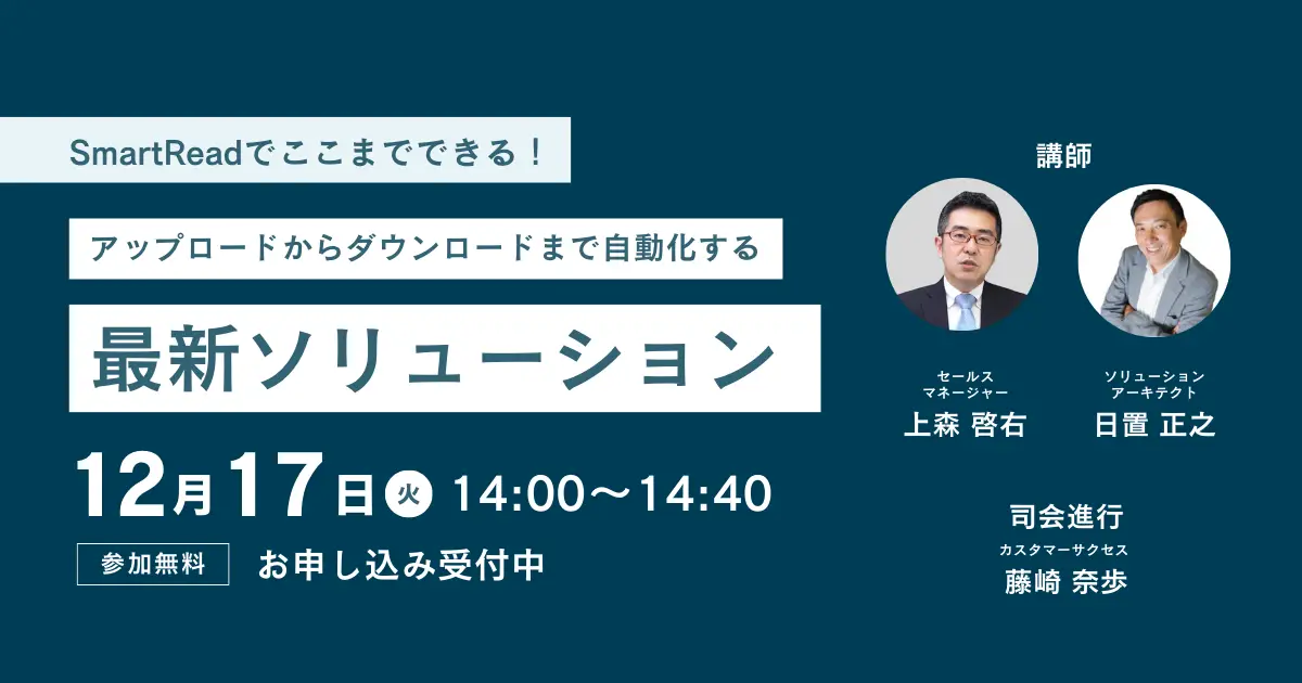 SmartReadは、高精度な文字読み取りだけでなく、複数文書の自動仕分けや後続システムとの連携など、文書処理の各プロセスを効率化することで、紙文書や文書画像からのデータ抽出やデータ活用に関する企業の課題を解決します。
